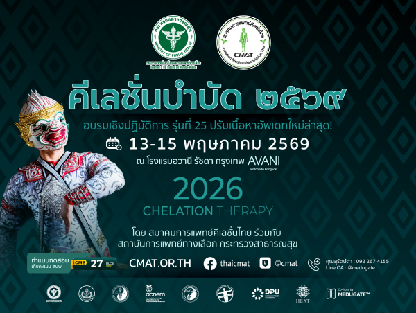 ขอเชิญแพทย์และบุคลากรทางการแพทย์เข้าร่วม อบรมคีเลชั่นบำบัด รุ่นที่ 24 ระหว่างวันที่ 7-9 พฤษภาคม 2568 กรุงเทพ